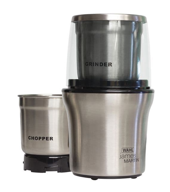 Easy to use one touch opperation 200w motor Dishwasher safe Includes James Martin recipe book 70g capacity Removable stainless steel cups for easy cleaning Cable tidy for space saving storage Two cup function for wet or dry use Grinder attachment for coffee and spices Chopper attachment for vegetables and nuts Easy push down operation Recipe book included Product Nett weight: 1.366 kg Product Dimensions H 290 x W 140 x D 140 mm (this excludes packaging)